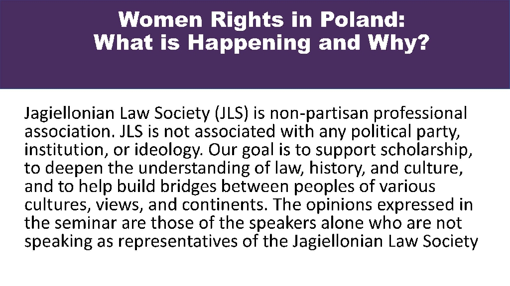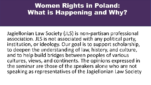 Jagiellonian Law Society is a non-affiliated and non-partisan professional organization. One of our aims is to educate fellow Americans about the long and noteworthy Polish history, elucidate the remarkable diversity of Polish culture, and help shed light on long and distinguished history of Polish legal thought. We also aim to create a bridge between the current Poland and the Polish American Polonia. We take no position on political issues, but we wish to provide a non-partisan forum for the exchange of scientific and legal ideas and a respectful debate; we believe in education and we want to enhance mutual respect and understanding between people. It is with these aims in mind, that we would like to inform you about the upcoming Zoom webinar on What is Happening in Poland and Why? on April 15, at 12 pm US EST.